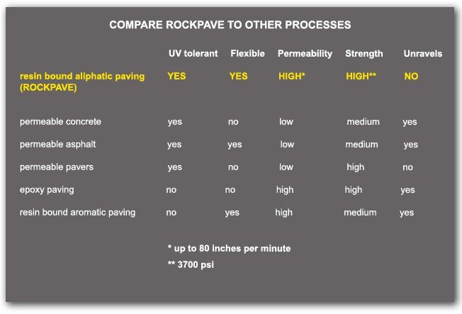 - Rockpave has unrivaled, quantifiable structural integrity (ie; 3700 lbs of impact strength, permeability up to 80 inches per minute, UV protection).